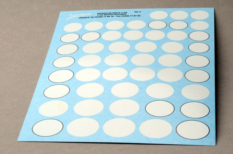 Ronds blancs 1/24 INTR02 10,00 € l'unité + – Ajouter au panier The add to cart button will appear once you select the values above Décalcomanies en sérigraphie, echelle 1/24e 130 x 190 mm Damètres 15, 16, 17, 18.5, 19.5, 20.5, 21.5, 22.5mm Produits associés Résultats 1 à 1 sur 1 9,00 € l'unité Chiffres Noirs 1/24 INTNR-BK-30-1 + – Ajouter au panier Résultats 1 à 1 sur 1